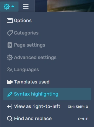 To make your life easier, enable syntax highlighting in your source editor. This feature makes your code colorful which lets you distinguish between html tags vs. plain text vs. templates vs. tables. For that you need to find settings in the right corner.