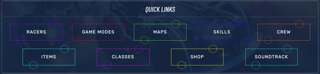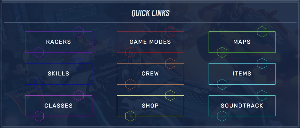 Can you see what happened? There was not enough space for all of them to fit in inline, therefore they started pushing some extra weight to the bottom automatically. Where can it be useful? Let's say Hammer has a small granny's monitor while Sophiedp has an UltraHD TV that is a billion inches wide. That '40%' will surely look different for them, right? Hiding the right rail or expanding the page will have a similar effect. Take a look at our lovely buttons on the main page on Disney Speedstorm Wiki when they are on a small version of the page vs. when they are on the expanded version: