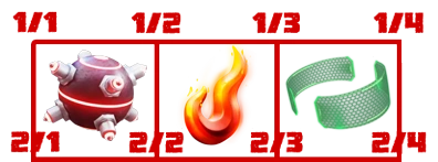 - Then we add our first picture wrapped in grid area: <div style="grid-area: 1 / 1 / 2 / 2">[[File:Bomb.png|100px]]</div>;